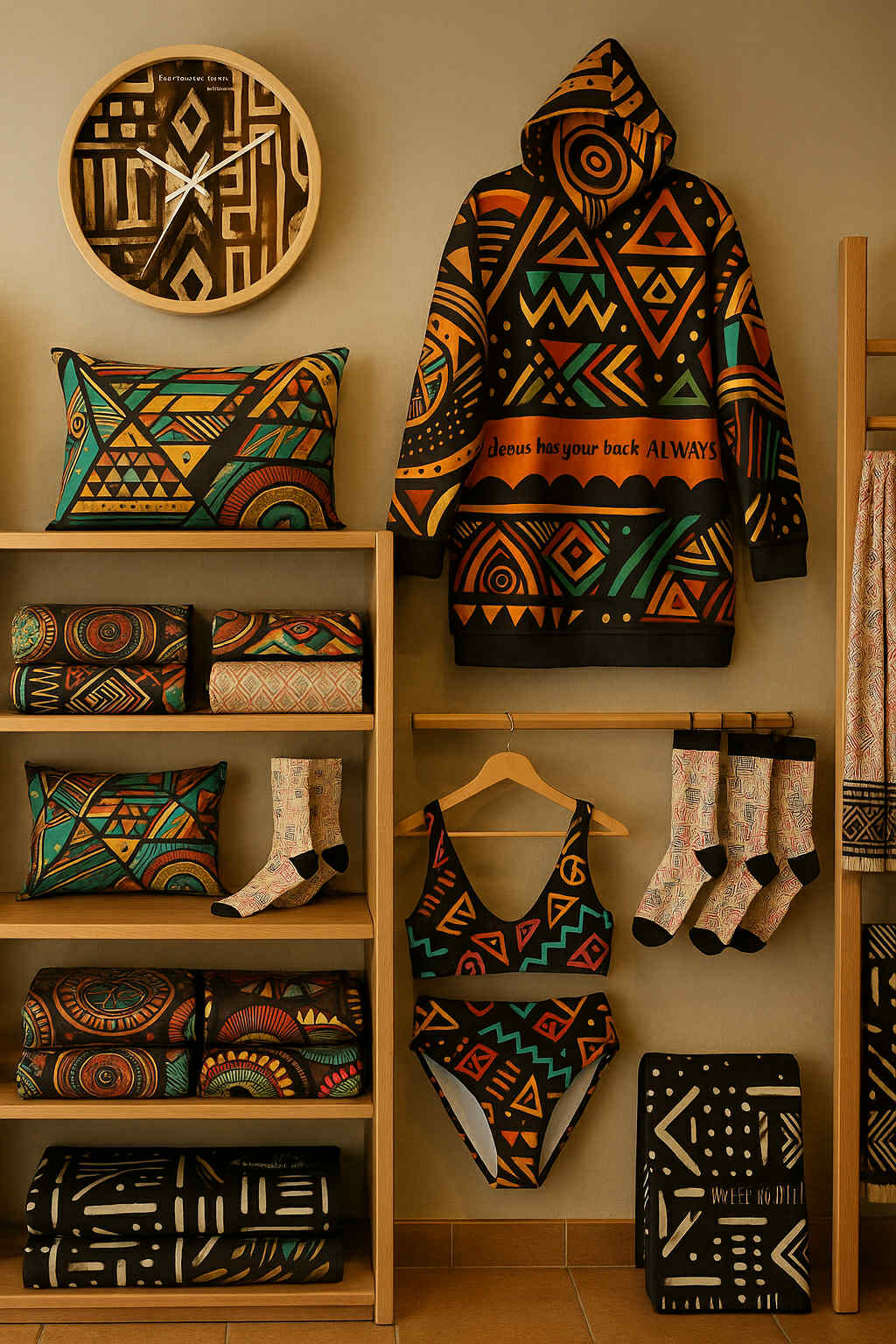 We sell African inspired artwork with biblical verses & quotes on various items like car seat covers, canvas prints, blankets and more to come.