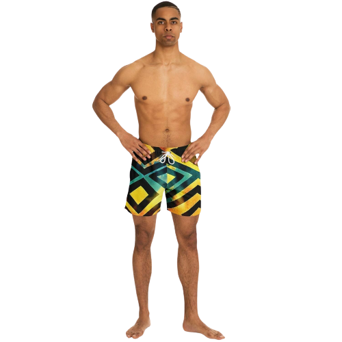 Look and stay cool with these shorter-length swim trunks that hit above the knee. They come in a fast-dry fabric, and feature a drawstring waistband, mesh basket lining and mesh-lined side pockets.