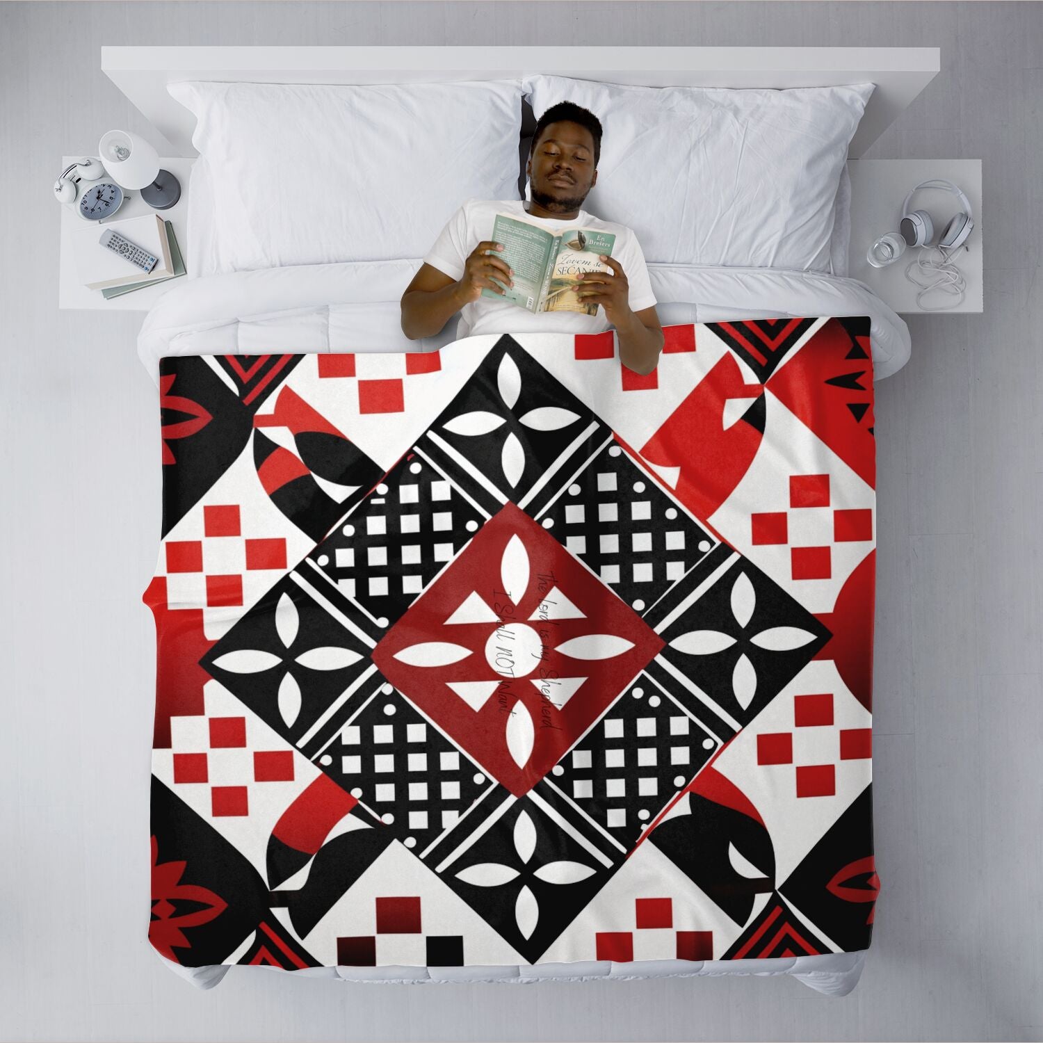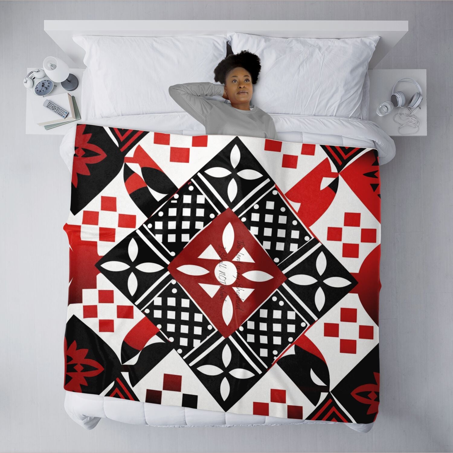 You want a blanket that's as unique as you are, but the only options available to you are boring and uninspired. This uniquely shaped blanket is what you need in your life! It is the perfect bedroom accessory to brighten up your room while keeping yourself warm during wintry nights. Whether you're looking for a special gift for a loved one or a personal reminder of your faith, our "African Geometric patterned Psalm 23" blanket is sure to exceed your expectations. It's the perfect way to add a touch of cultural style to your home while embracing the timeless wisdom and inspiration of God’s word. Stay in cuddle mode for hours with this unique blanket that feels amazing to the touch. It’s made with 100% micro-mink polyester outer fabric and an ultra soft microfiber fleece lining that’s soft yet still very durable. Plus, the high-definition prints guarantee that you don’t have to worry about the design ever fading or cracking even after many washes!