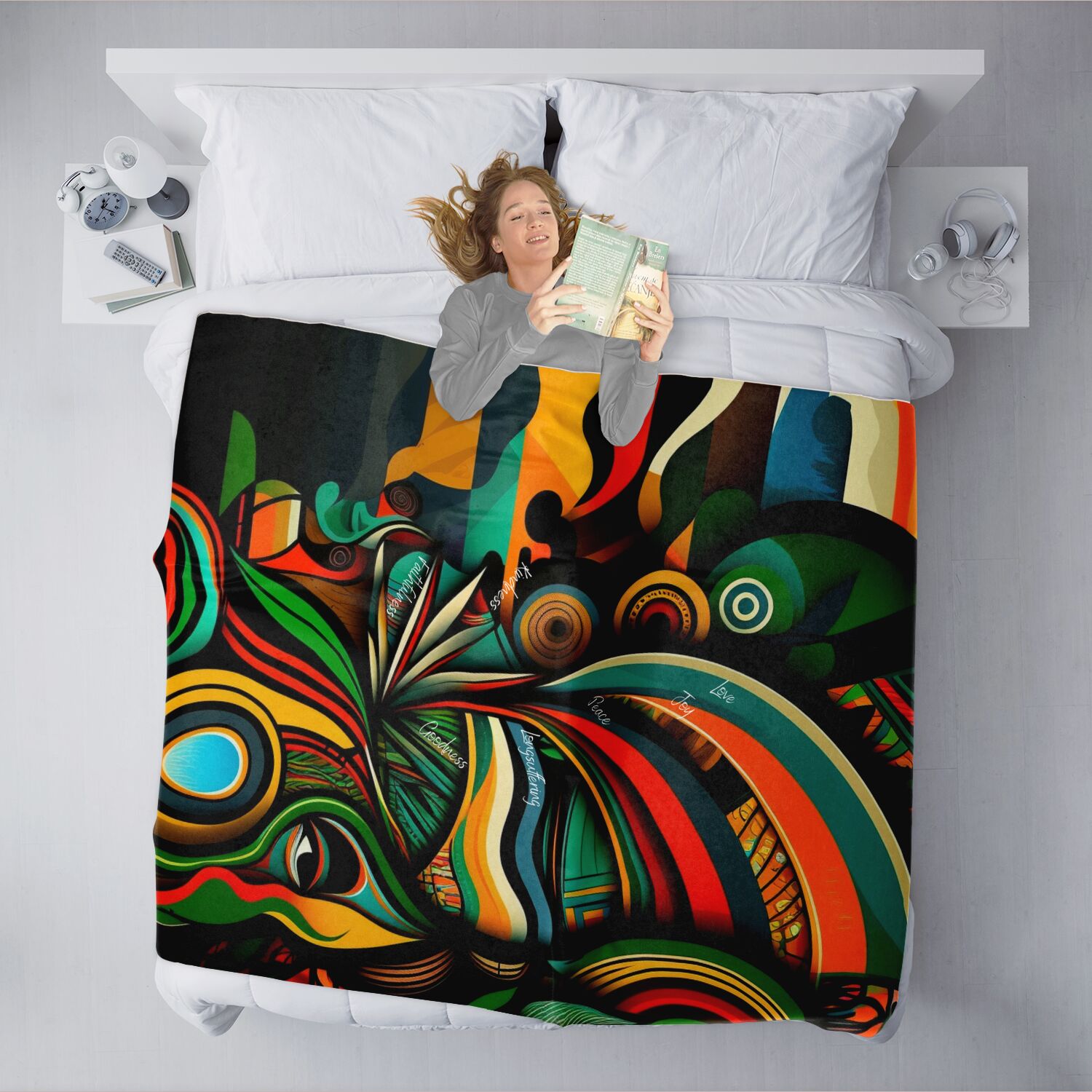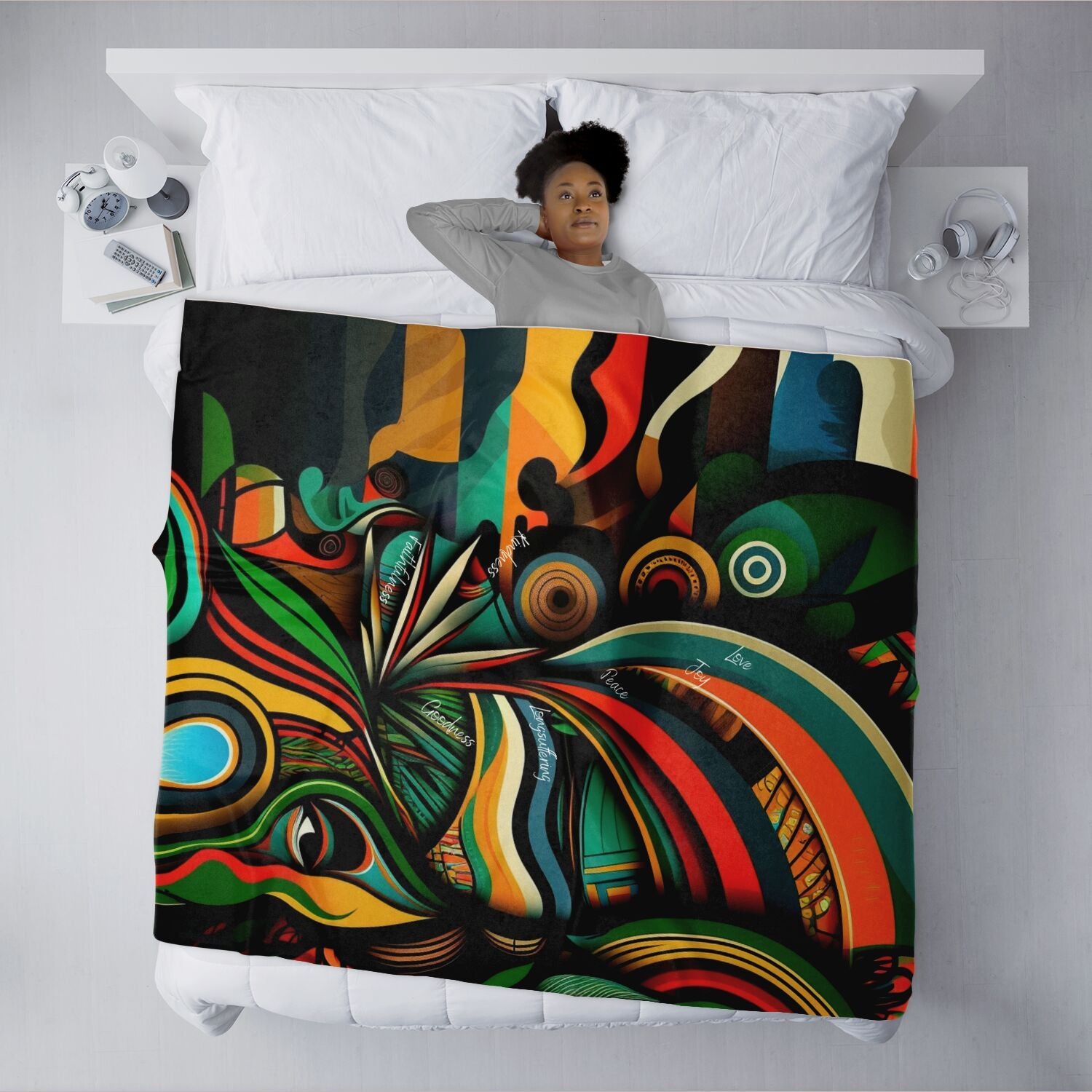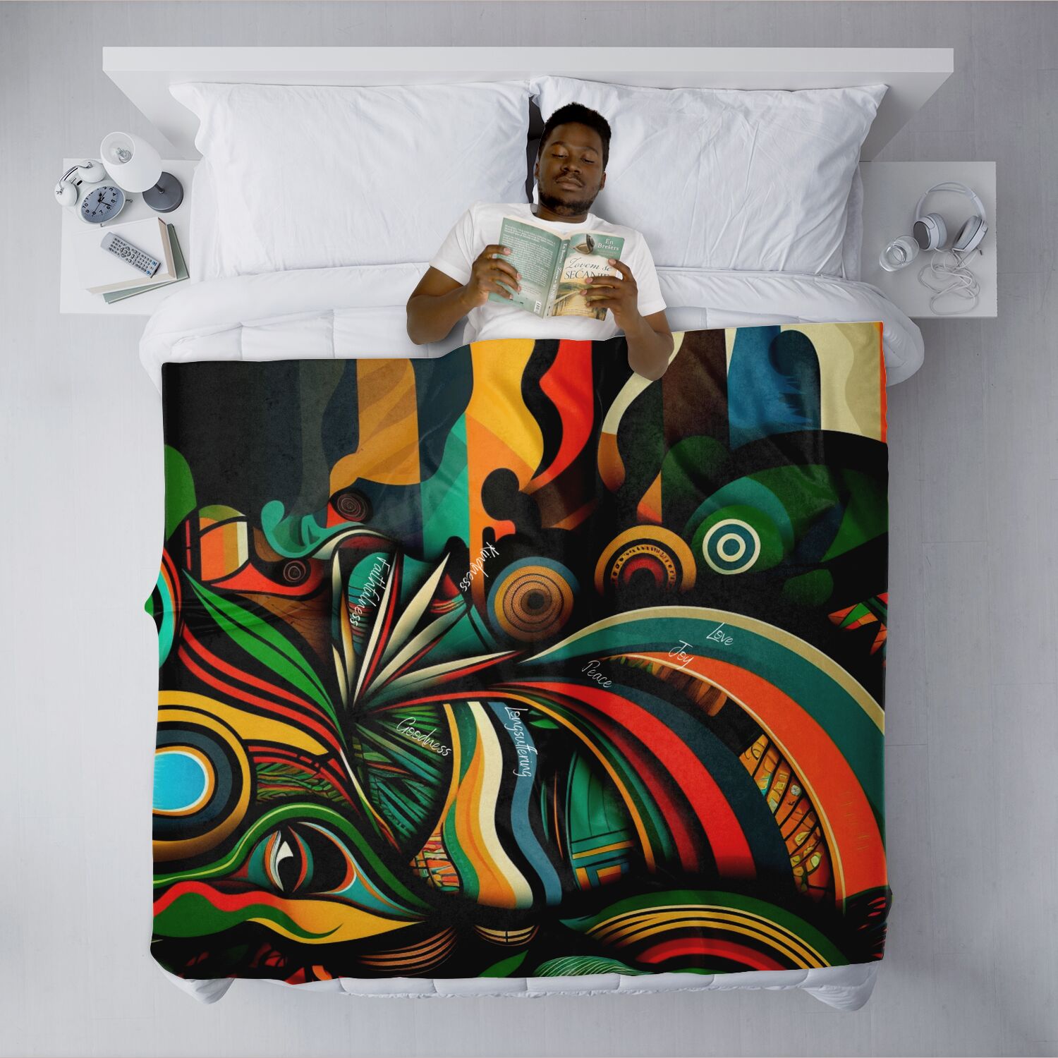 You want a blanket that's as unique as you are, but the only options available to you are boring and uninspired. This uniquely shaped blanket is what you need in your life! It is the perfect bedroom accessory to brighten up your room while keeping yourself warm during wintry nights. Whether you're looking for a special gift for a loved one or a personal reminder of your faith, our "African fruitful" blanket is sure to exceed your expectations. It's the perfect way to add a touch of cultural style to your home while celebrating the beauty and gifts of the Holy Spirit, love, joy, peace, patience, kindness, goodness, faithfulness, gentleness, and self-control. Stay in cuddle mode for hours with this unique blanket that feels amazing to the touch. It’s made with 100% micro-mink polyester outer fabric and an ultra-soft microfiber fleece lining that’s soft yet still very durable. Plus, the high-definition prints guarantee that you don’t have to worry about the design ever fading or cracking even after many washes!