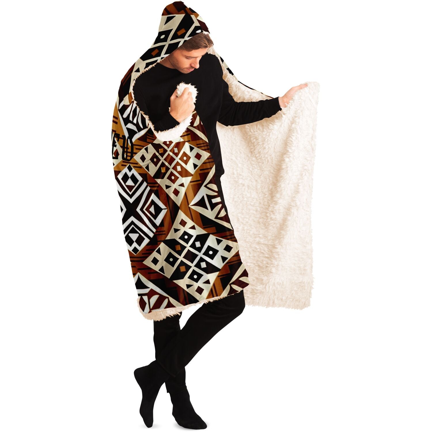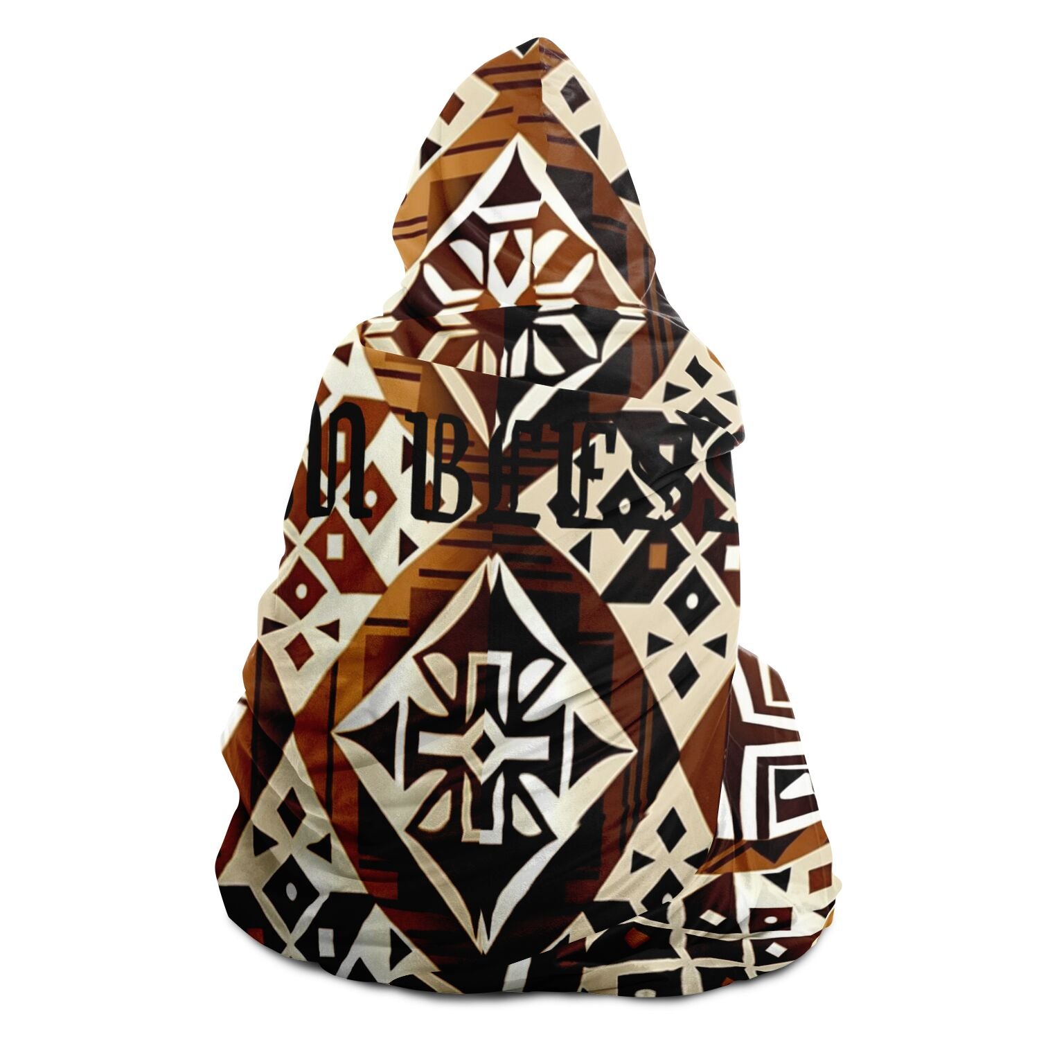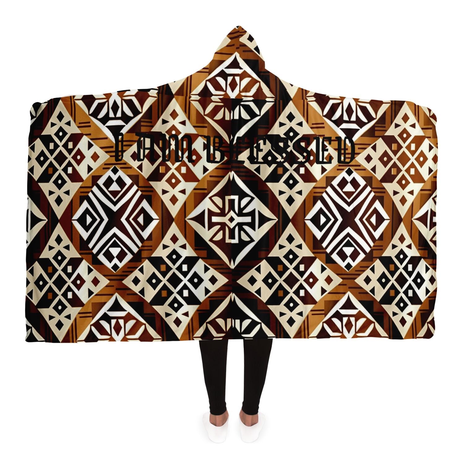 "Blessed: A Brown, Black and White African Patterned Blanket with 'I am Blessed' Logo" AOP