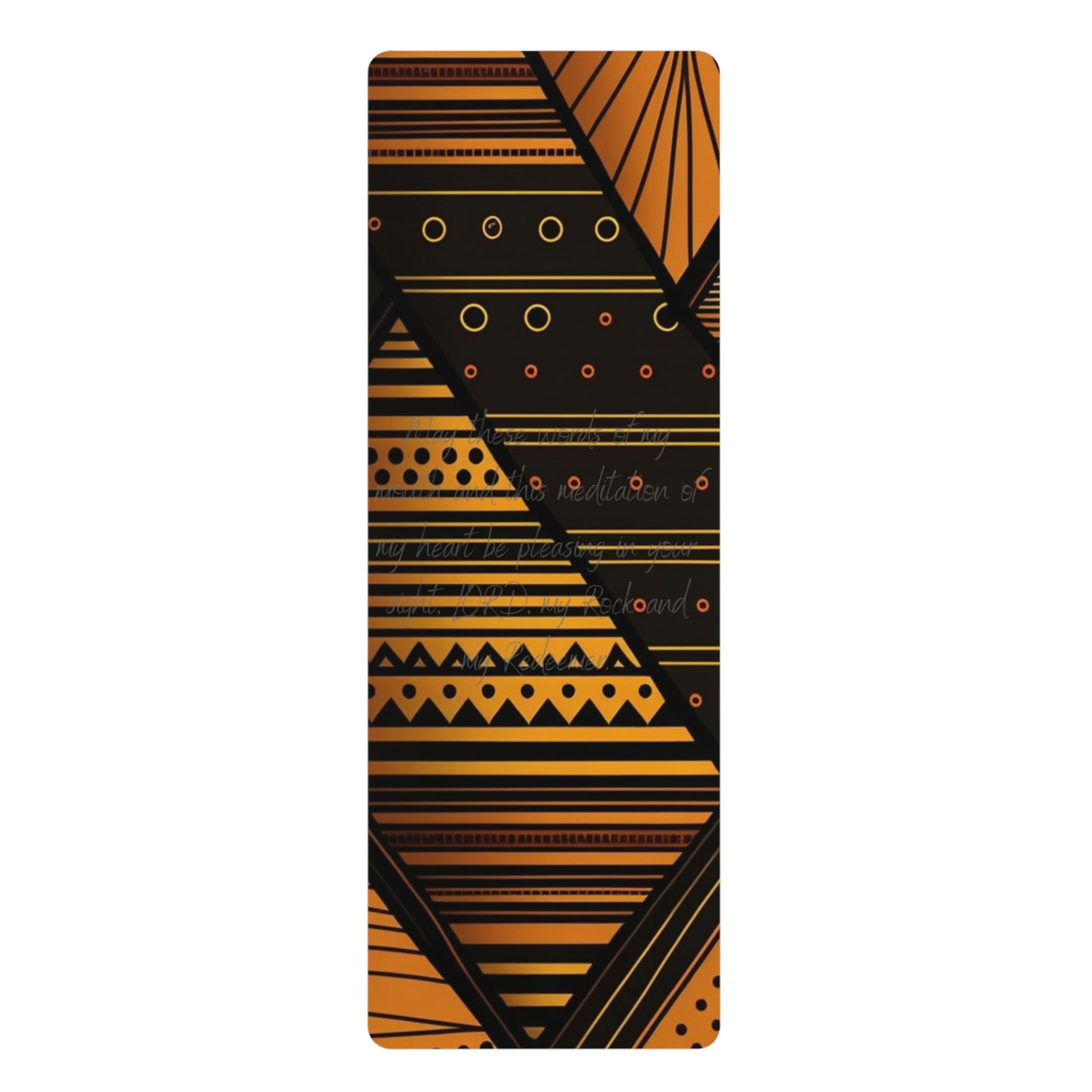 Our African Print Exercise Mat is the perfect choice for anyone looking to combine their love of fitness with their faith. Made from high-quality materials, this mat features a stunning African print design that adds a touch of cultural significance to your workout. The mat also features an inspiring meditation slogan inspired by the word of God, reminding you to focus on your faith as you focus on your physical health. With an anti-slip rubber bottom for extra stability, this exercise mat helps you better balance during any pose and absorbs impact, delivering a higher comfort factor for all your exercise. Each mat features edge-to-edge printing in crisp detail.